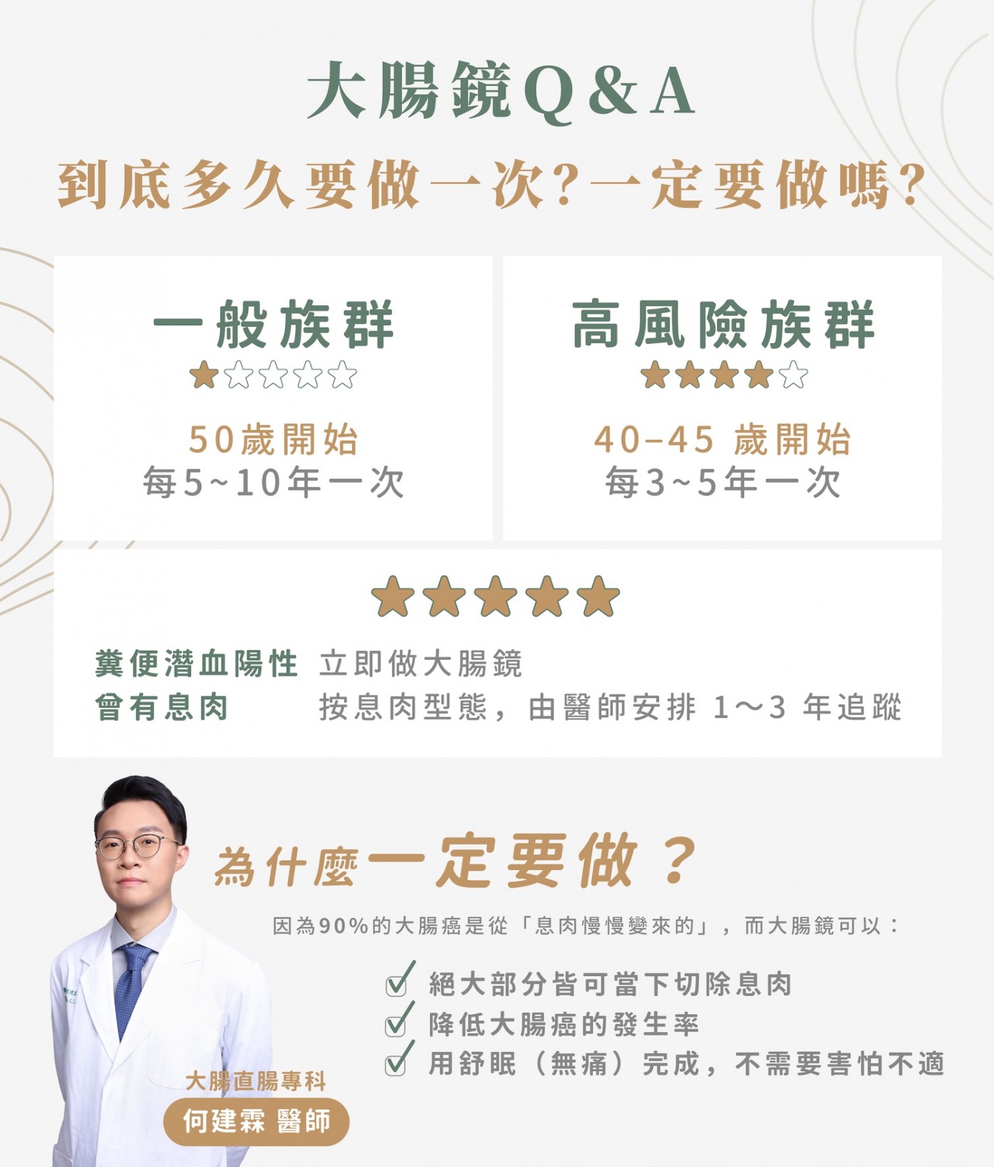 ▶ 建議 40–45 歲開始做大腸鏡,不要等到 50。