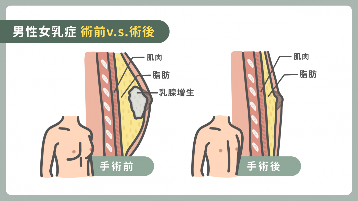 「男性女乳症」是男性胸部因為乳腺組織異常增生或脂肪堆積,導致胸型外觀接近女性的現象。根據臨床統計,約有三成男性一生中會出現不同程度的女乳症,