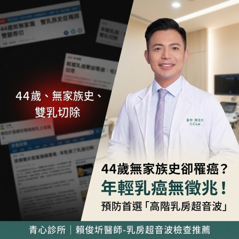 44歲無家族史卻罹癌?青心診所賴俊圻醫師警告:年輕乳癌無徵兆,預防首選「高階乳房超音波」