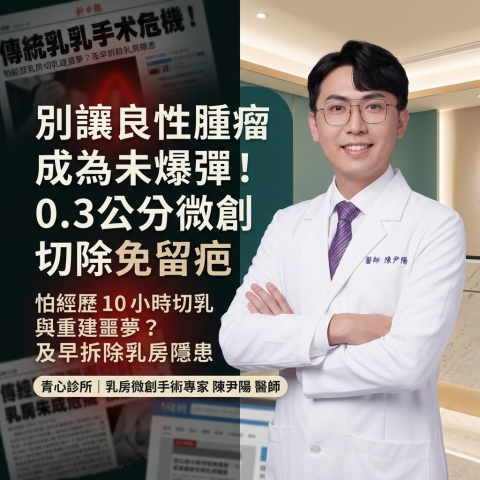 怕經歷 10 小時切乳與重建噩夢?青心診所陳尹陽醫師:「0.3公分乳房微創手術」及早拆除良性未爆彈!