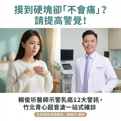摸到硬塊卻「不會痛」?賴俊圻醫師示警乳癌12大警訊!竹北青心診所超音波一站式確診