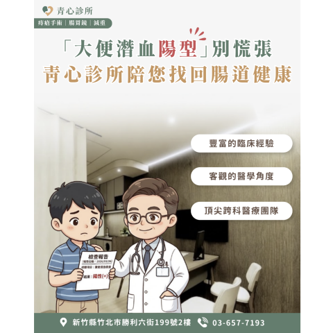 【新竹/竹北/台中】收到「糞便潛血陽性」怎麼辦?青心診所無痛大腸鏡與大腸息肉切除全解析 當您在健康檢查或國民健康署的公費篩檢後,收到了一張寫著「糞便潛血檢查(FOBT)結果:陽性」的報告單時,您的第一反...