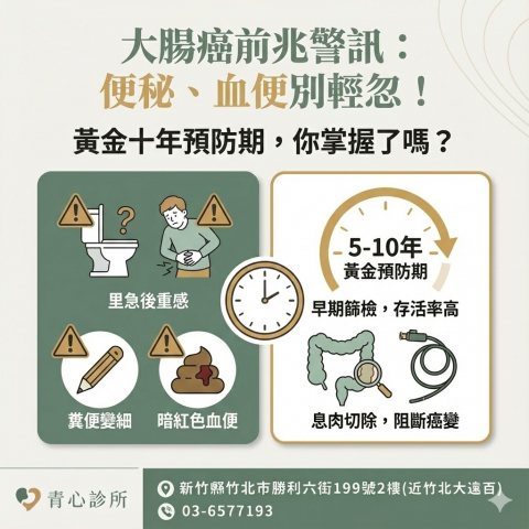 【大腸癌預防】蟬聯多年癌症榜首!大腸癌前兆有哪些?便秘、血便別輕忽 大腸癌曾連續 15 年蟬聯台灣癌症發生率第一名,雖然今年被肺癌超越,但它依然是威脅國人健康的沈默殺手。可怕的是,大腸癌早期幾乎「沒有...